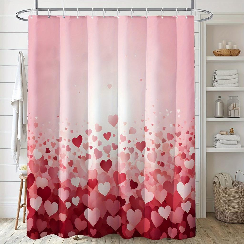Elegant Pink and Red Heart Pattern Waterproof Shower Curtain – Perfect for Adding a Romantic and Cozy Touch to Your Bathroom
