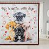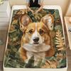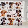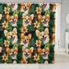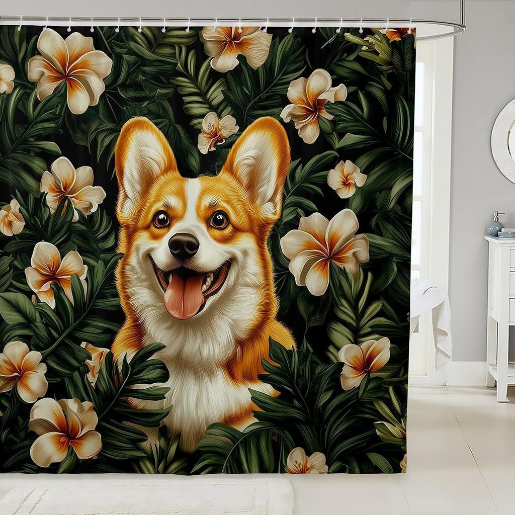 Cartoon Corgi Bathroom Curtain,Blossom Flower Green Leaves Shower Curtain Kids Girls Bathroom Decor,Cute Dog Nature Botanical