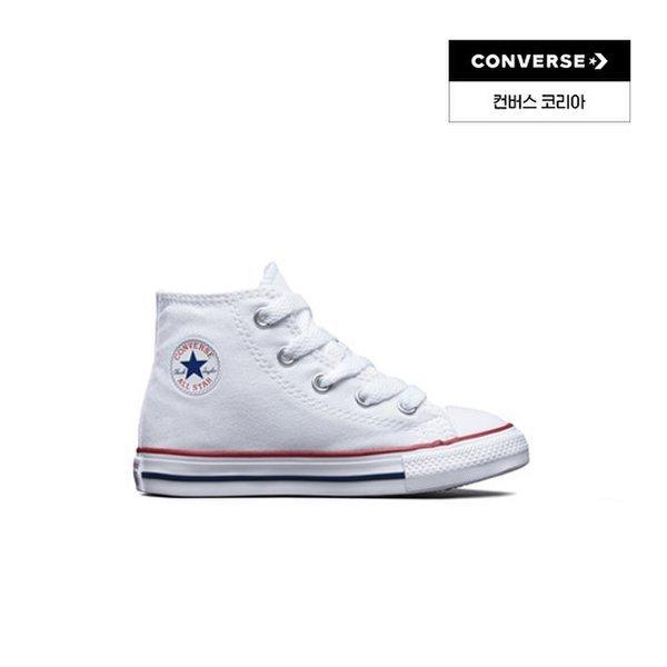 The Converse Chuck Taylor All Star Classic Infant Optical White 7J253C is a kids' sports sneaker featuring a classic design in a low-top style. It comes in an Optical White color applied to an infant size product. The low-top shape offers comfortable ankle support, and the Converse All Star logo is inscribed on the rear. The flat design without a heel emphasizes the basic sneaker feel.
