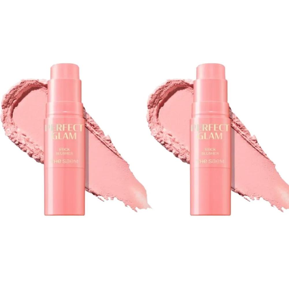 The Saem Blusher Perfect Glam Stick PK01 Pink Fairy x2