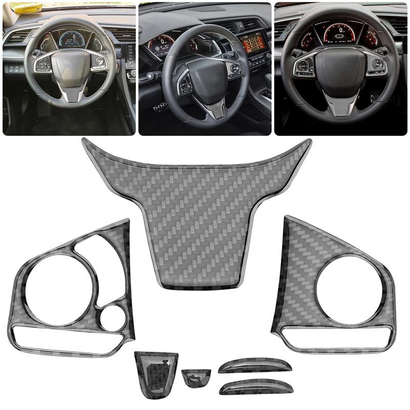 Carbon Fiber Steering Wheel Button Switch Panel Trim Cover Car Decoration Accessories For Honda Civic 10Th Fc/Fk 2016-2019