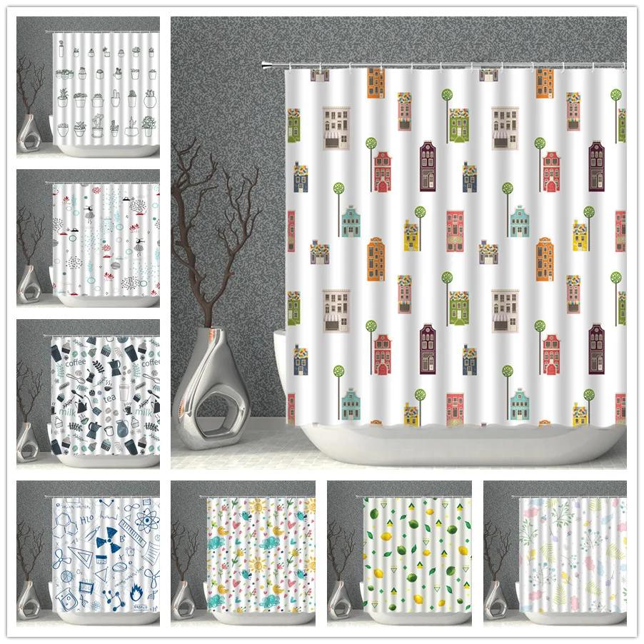 Colour Cartoon Shower Curtain White Print Waterproof Polyester Cloth Bath Curtains With Hooks Multi-size Bathroom Screen Decor