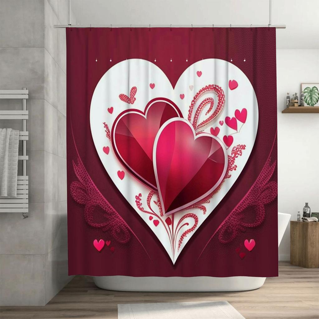 Elegant Red and White Heart Artistic Waterproof Shower Curtain for Bathroom Decor, High-Quality Material and Easy to Clean
