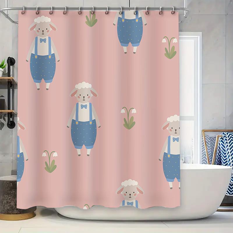 Pink Sheep Cartoon Printed Shower Curtain Waterproof Bathroom Decor Liner for Home Decoration Pink 160x180cm