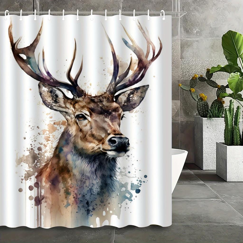 Shower Curtain: Watercolor Deer Design for a Rustic and Artistic Bathroom Decor