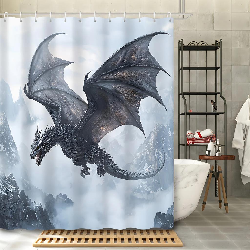 Mystisk drakduschdraperi - majestätiska flygande varelser hängande på vardagsrumsväggen, sovrumsdekoration - fantasy och