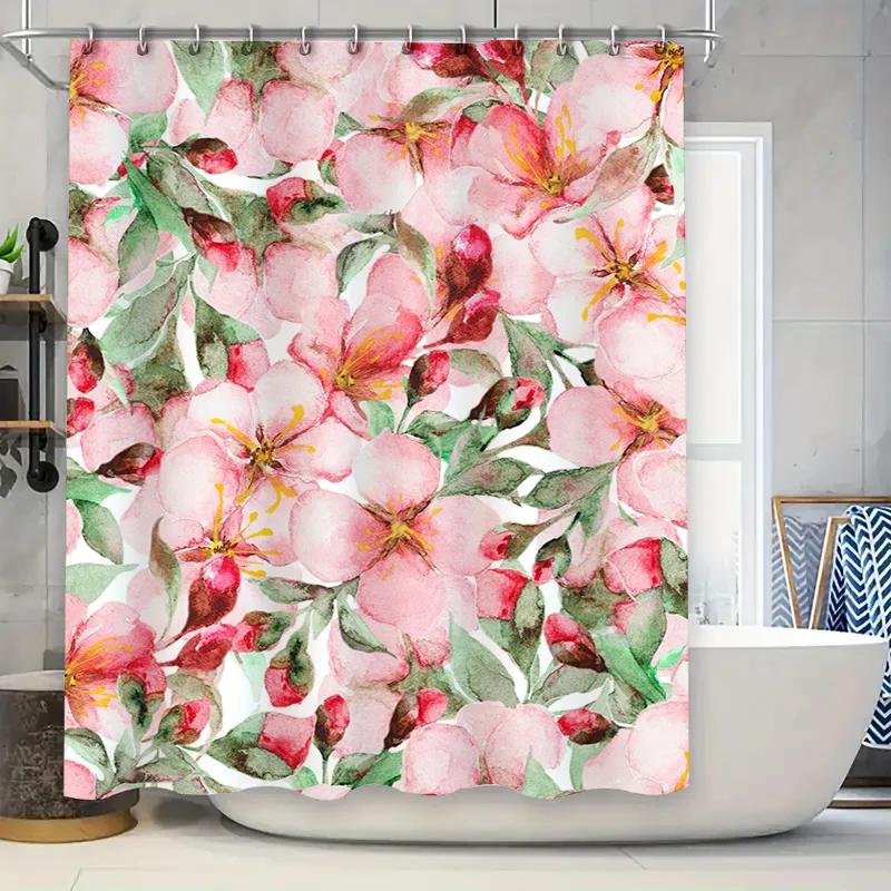 Delightful Pink Bloom Watercolor Shower Curtain Flower Decor for Bathroom Home Decoration in Various Sizes