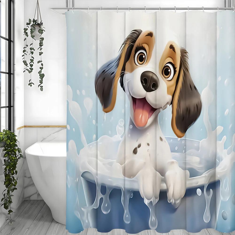Cute Puppy Shower Curtain, Bathroom Decorative Shower Curtain, Waterproof Shower Curtain with Hooks
