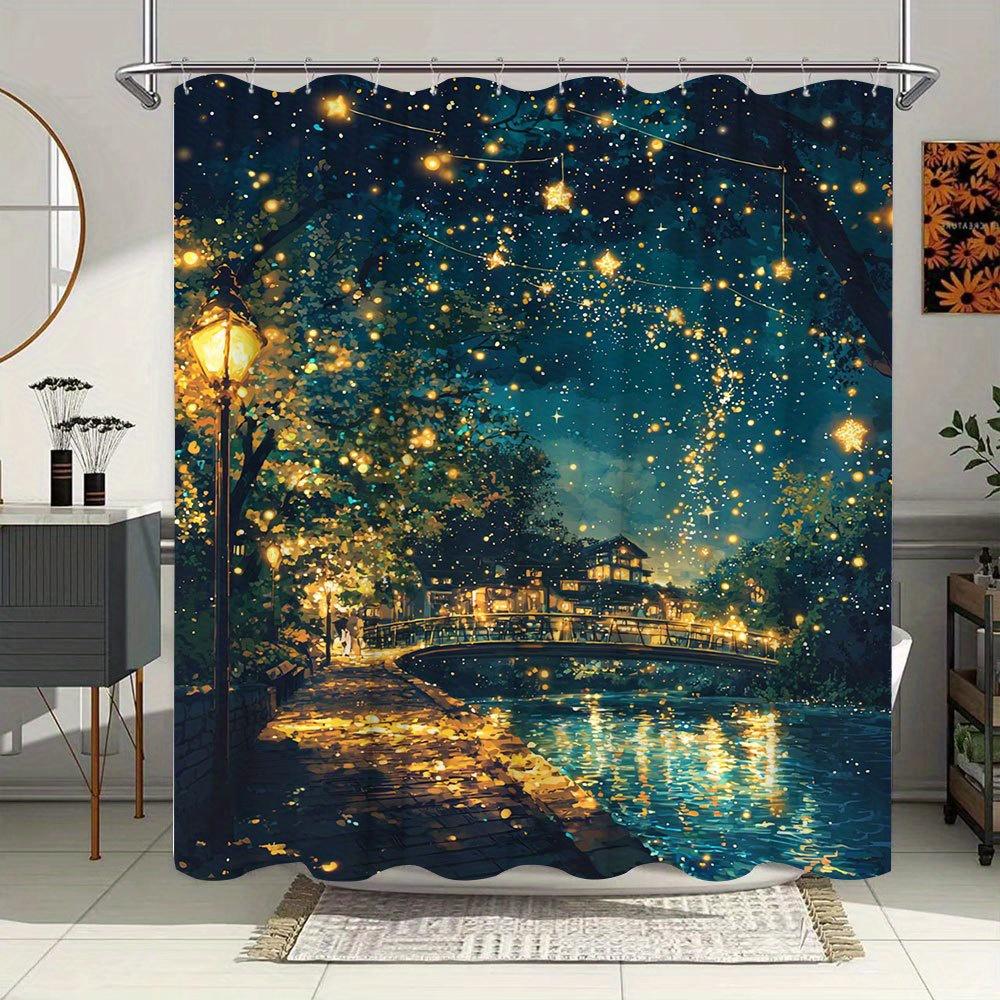 Enchanted Night Scene Waterproof Mildew-Resistant Shower Curtain - Romantic Design for a Cozy Bathroom Décor Experience