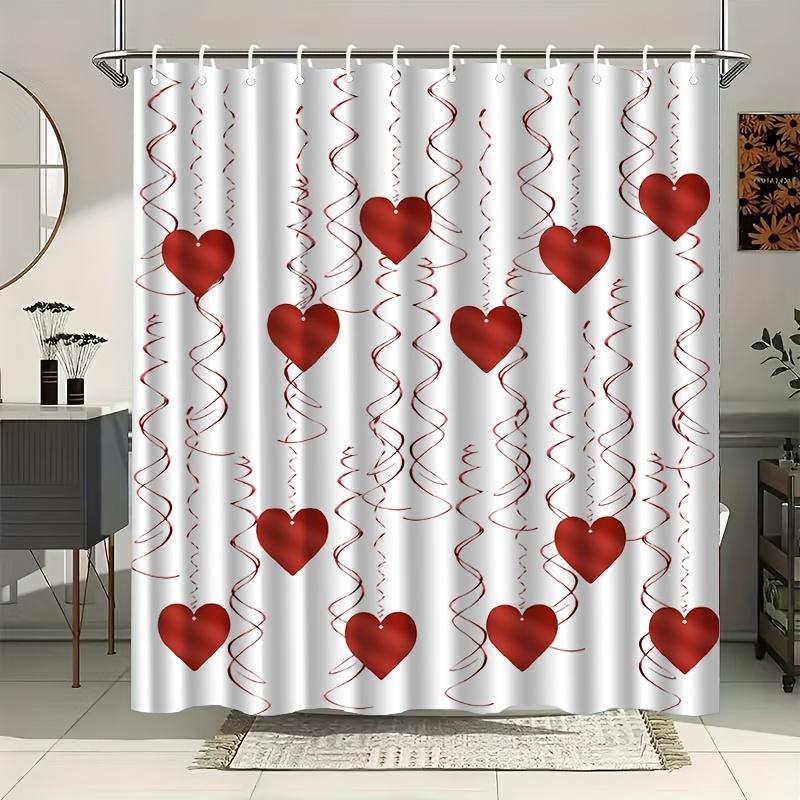Red Heart Shower Curtain White Background Love Design Romantic Bathroom Decor Waterproof Printed Bath Curtain Home Fashion