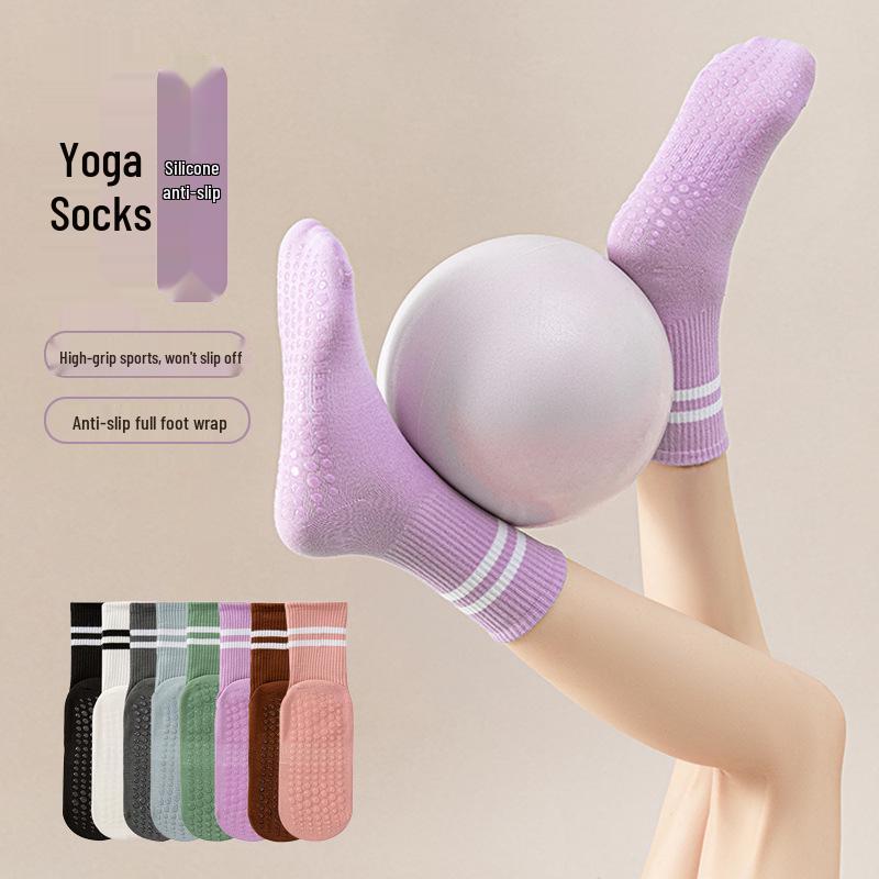 Women's Non-Slip Mid-Calf Yoga Socks with Silicone Grip - Breathable for Indoor Fitness & Pilates
