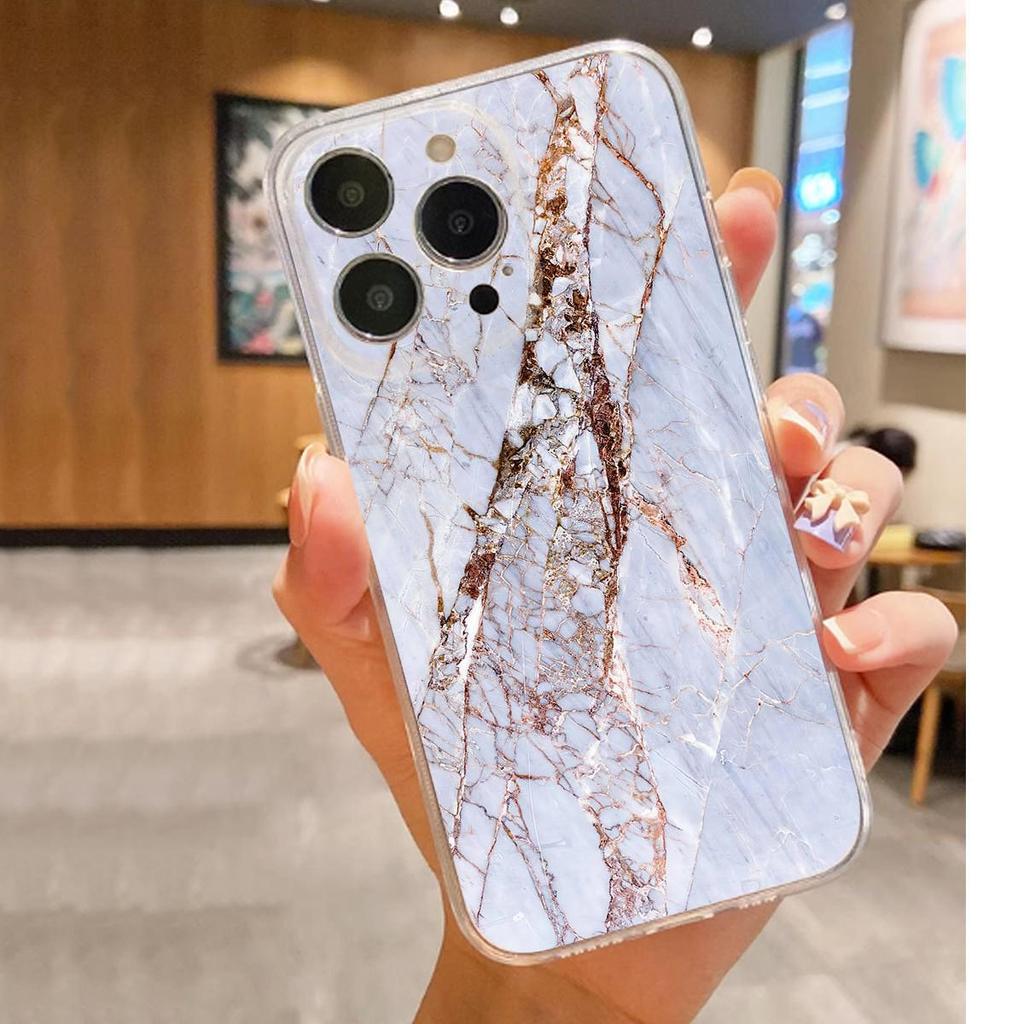 White Marble Anti-Fall Transparent Case for iPhone 14-17 Pro Max Series