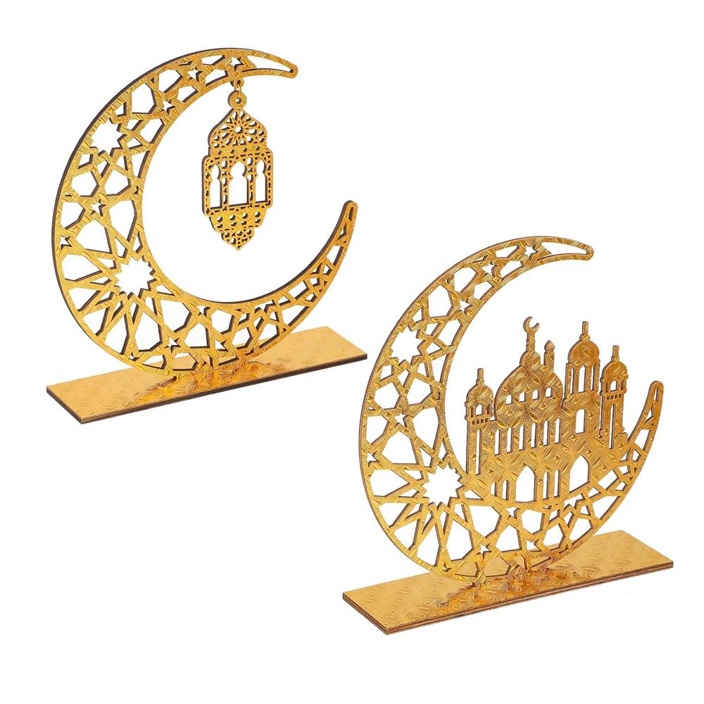 2 st Trä Ramadan Islamisk Eid Mubarak Kareem Bordskylt Måne Ihålig Stjärna Prydnad För Muslimsk Fest Dekorativa Bordsskivstillbehör
