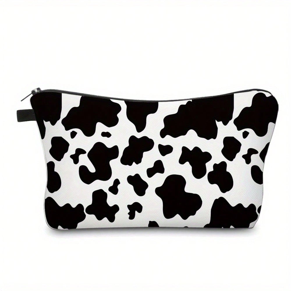 1pcs Fashionable Cowhide Polyester Makeup Bag With Zipper, Portable Toiletries And Storage Bag, A Must-Have Holiday Gift For Travel