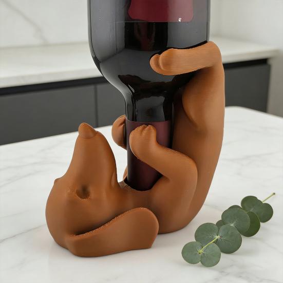 Adorable Dachshund Shape: Featuring a charming design of a dachshund lying on its back hugging the bottle, this rack doubles as a delightful decorative piece. It adds a playful and heartwarming touch to sideboards or wine cabinets, making it both a practical accessory and an engaging conversation starter.
