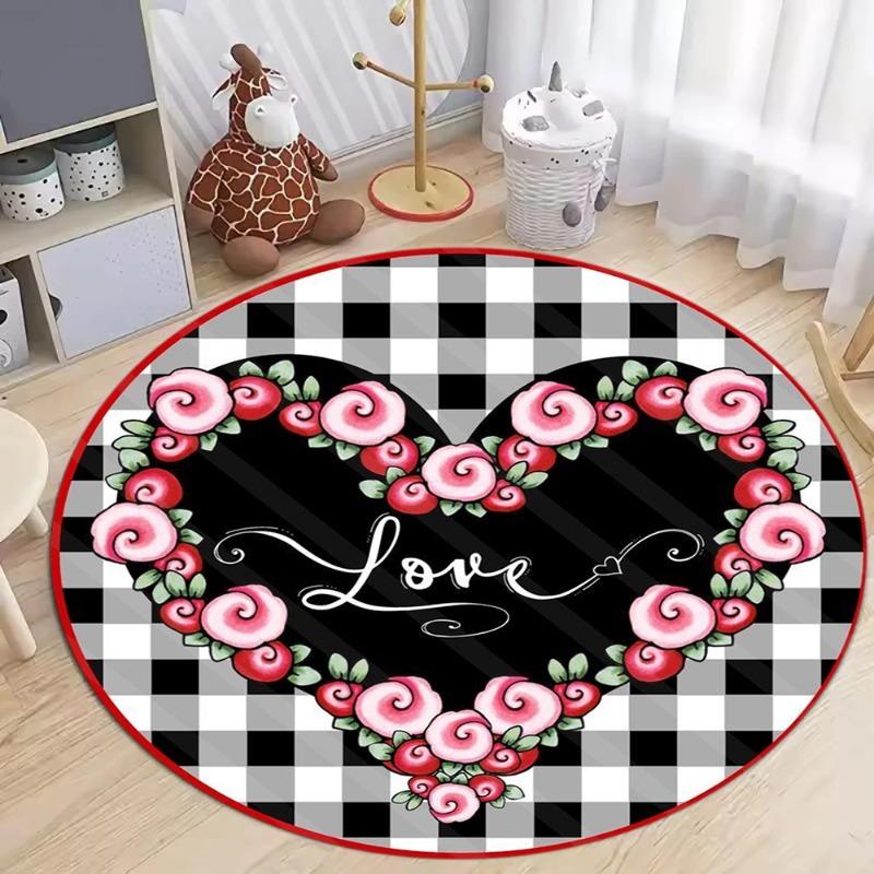 Rutigt Hjärtmönster Rund Matta Kärlek Rosmönster Mjuk Halkfri Cirkulär Matta Sovrum Vardagsrum Alla Hjärtans Dag Dekor Golvmatta