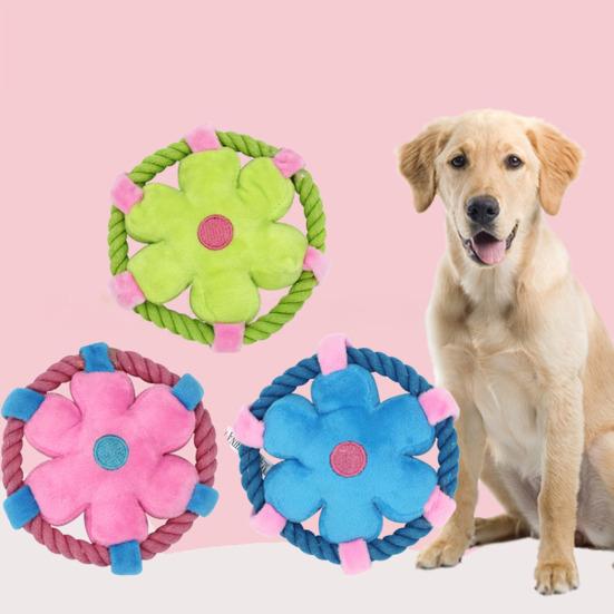Hållbar bitbeständig repcirkel: Med en tjock cirkel av bomullsrep som är både slitstark och rivtålig, tål denna leksak kraftiga dragkampslekar.. Den robusta designen stöder olika aktiviteter som att kasta, fånga och dra, vilket förlänger leksakens livslängd vid aktiv användning.