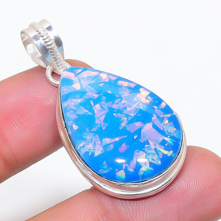 Natural Blue Triplet Opal Gemstone 925 Sterling Silver Pendant 1.77" AP-14294