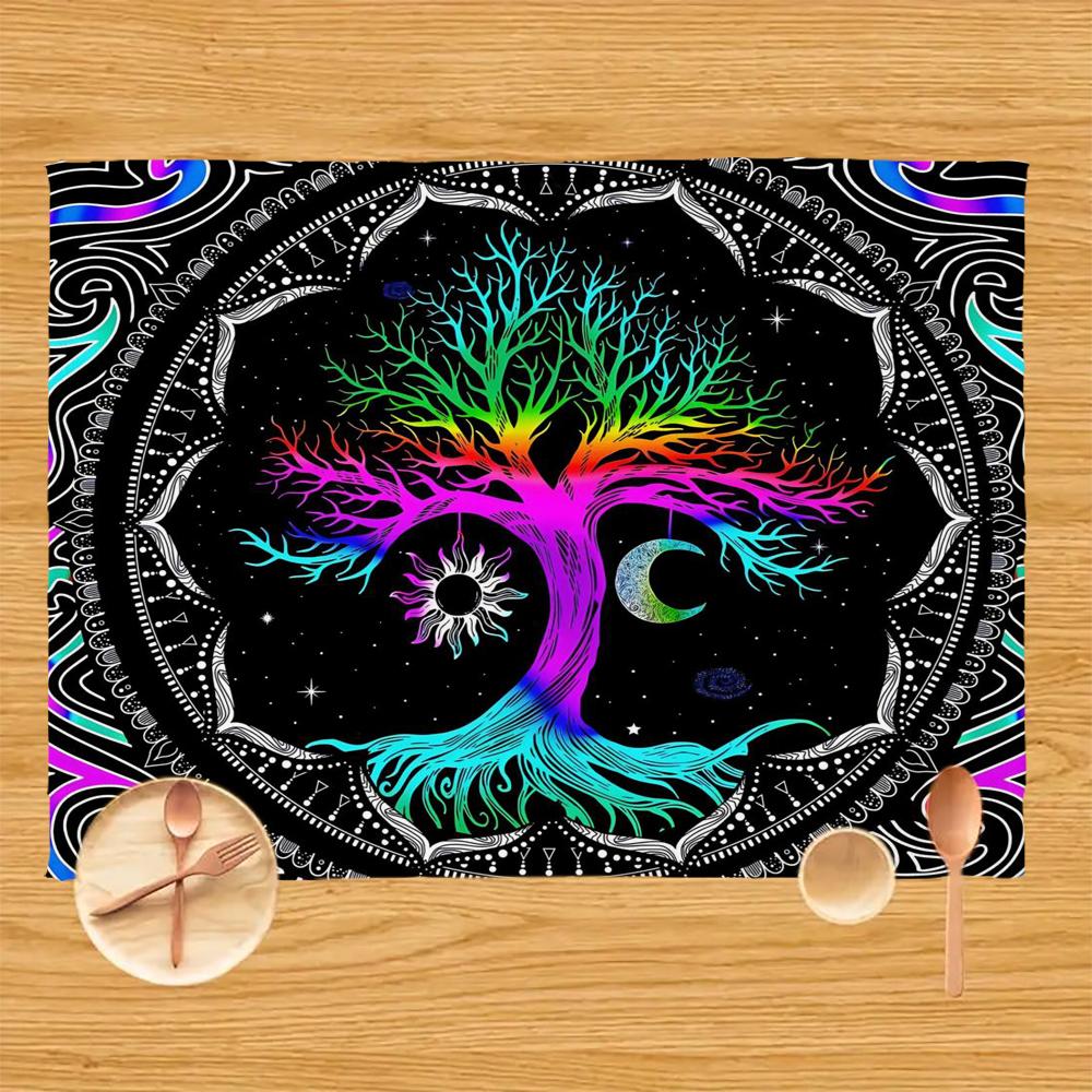 Nordic Vikings Tree of Life Painting Placemats Washable Linen Placemats for Dining Table Kitchen Party Home Decor