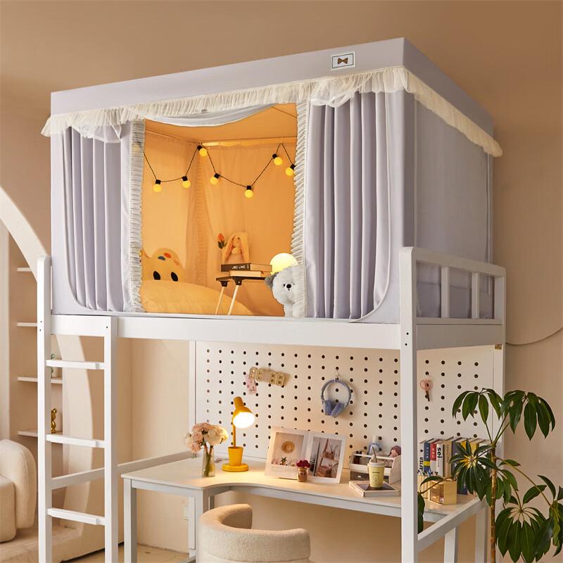 Handun Solid Color Dorm Bed Curtain with Mosquito Net and Frame