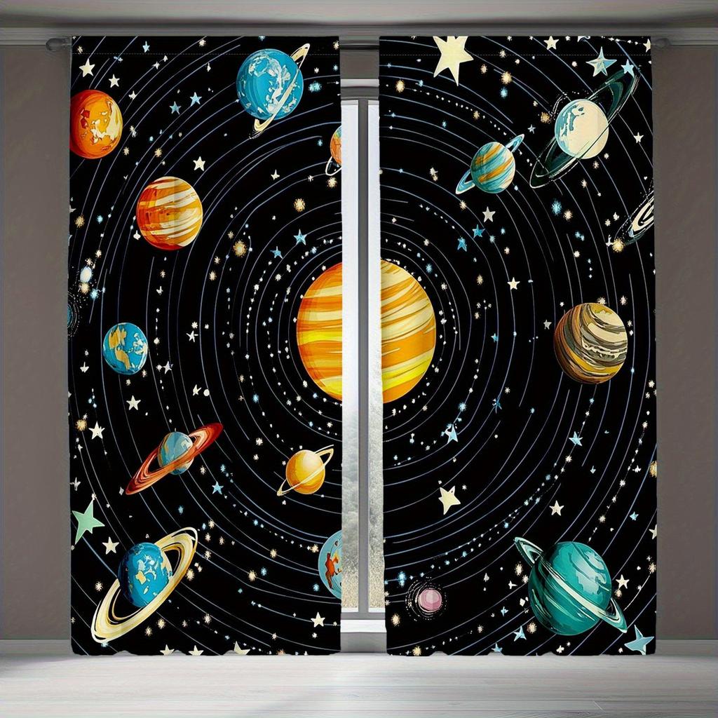 Polyester Galaxy Solar System Curtains Traditional Style Semi Uncorded Light Filtering Set Of 2 Made With Rod Pocket Machine Washable