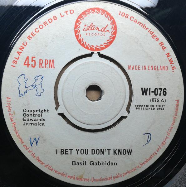 7inch Record BASIL GABBIDON I Bet You Dont Know WI076 Island Records 1963 UK Reggae Ska Dub Used