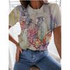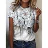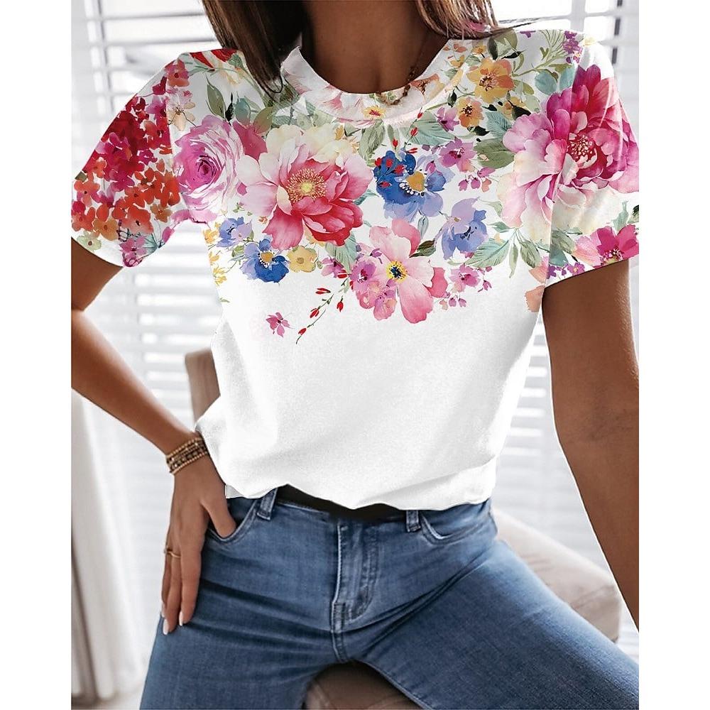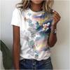 Colorful Flower Butterfly 3D Printed T-shirt for Women, Round Neck Short Sleeve T-shirt