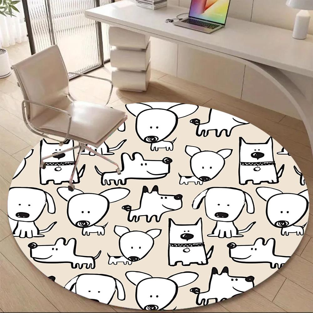 1pc Dogs Pattern Office Round Area Rug, Indoor Mat Suitable ForOffice, Under Office Chairs Bedroom Living Room Home Decor, Room Decot041