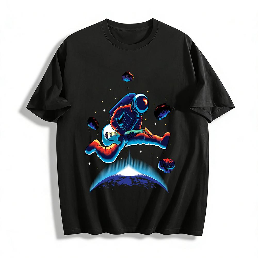 Astronaut Playing Guitar Space Rock Graphic Casual T-Shirt Pure cotton T-shirt
