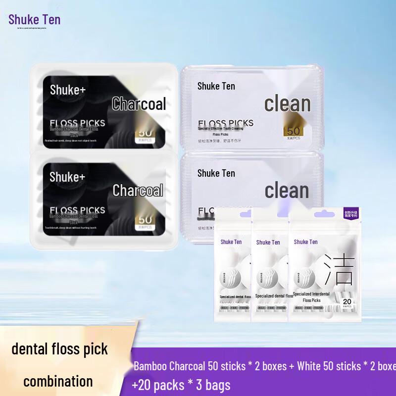 Shuke Bamboo Charcoal & White Dental Floss Sticks