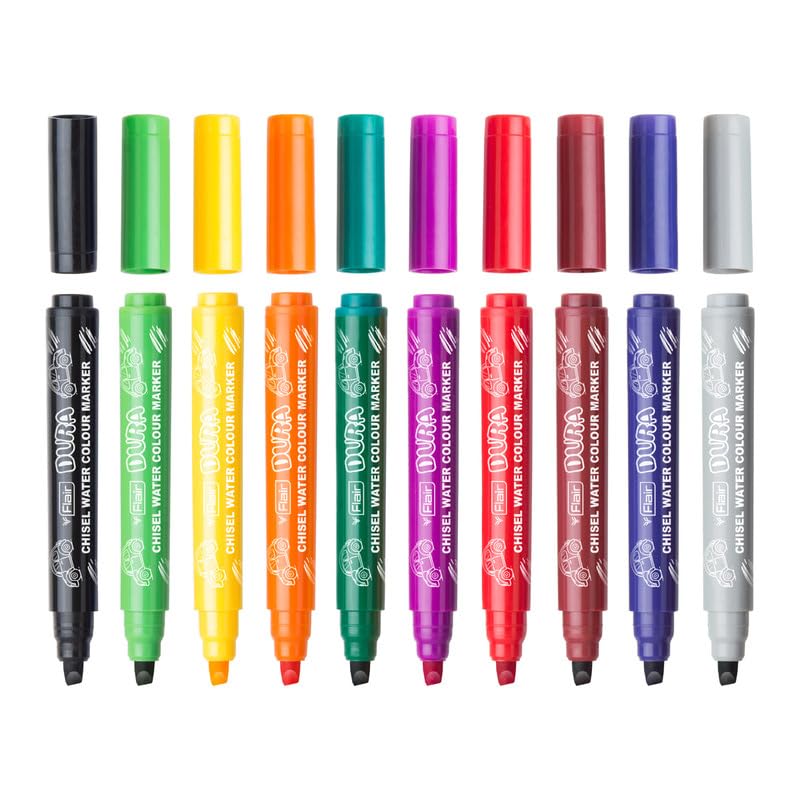 FLAIR Creative Series Dura Chisel Water Colour Pen Set Of 10 Refillable Non Toxic Washable Coloring Pens For Kids Art