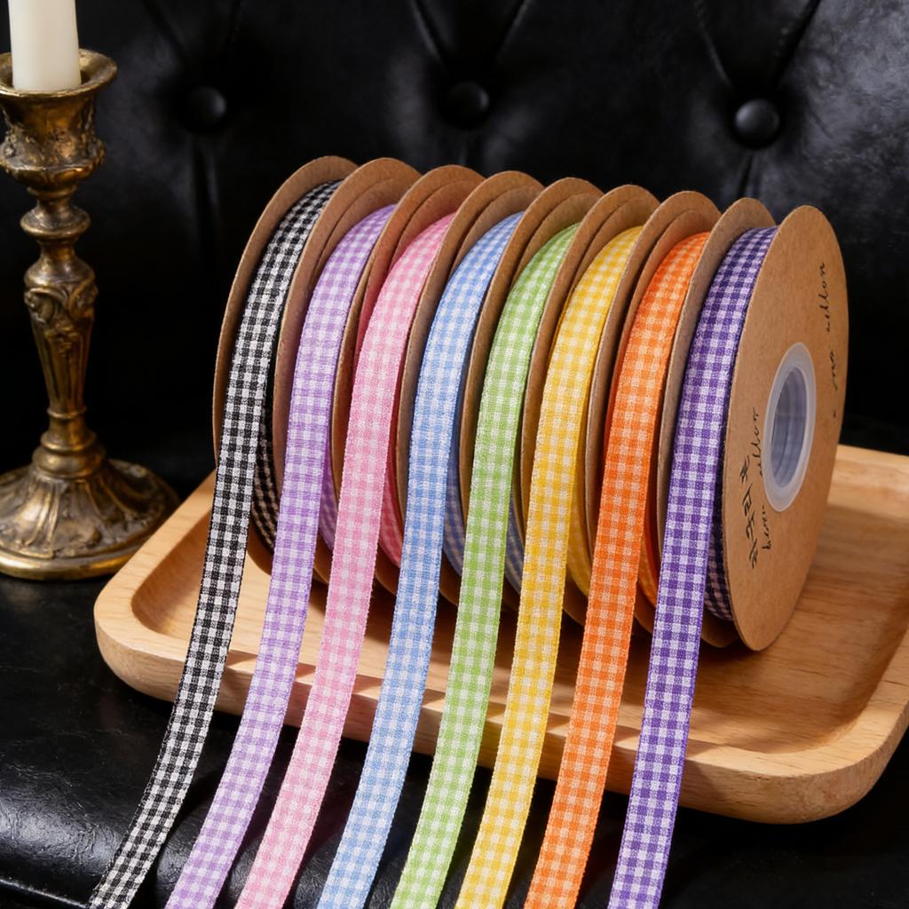8 Rolls Plaid Ribbon Grid Ribbon Checked Polyester Ribbon 3/8" Fabric Ribbon Roll for Hair Accessories Craft Christmas Gift Wrap