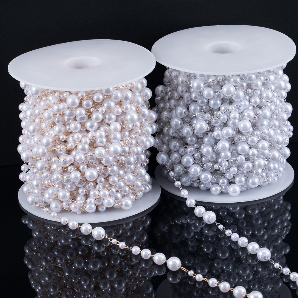50CM 1M Plastic Imitation Pearl Ball Beaded Chain 3-8mm Multisize Beads Copper Chains Necklace Earring Cloth DIY Jewelry Making