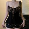 Transparent Leopard Mesh Corset Lace Slim Crop Tops Elegant Suspender Vest with Pads Ladies