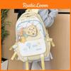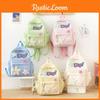 This youth-oriented backpack features a lightweight nylon construction with a geometric pattern and macaron colors, offering a stylish yet functional design. Its curved shoulder straps ensure comfortable carrying during school or outdoor activities. Wipe clean with a damp cloth to maintain its appearance.