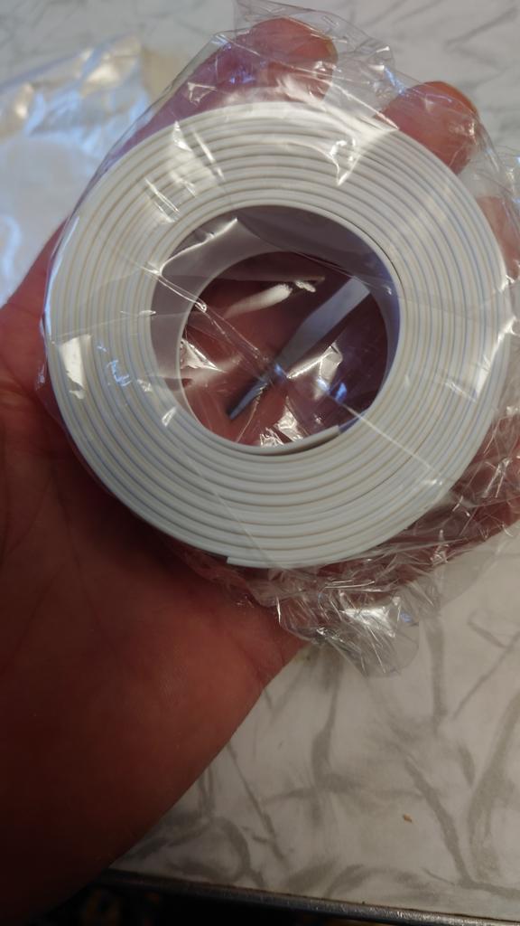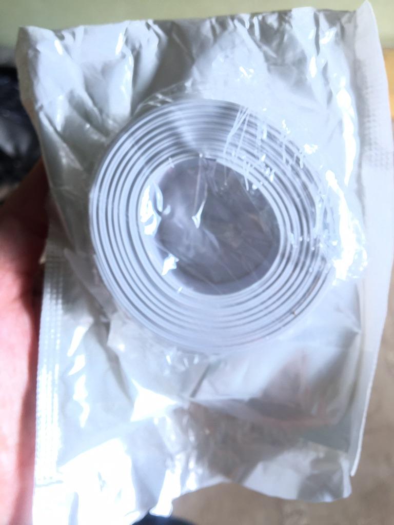 Приїхав ущільнювач, невеликої ширини (по 1 см на кожну половину). Заявлена довжина (3,2 м) мабуть таки є. Поки не клеїв, тому нічого не можу сказати. Є думка що буде попадати вода між стиками плитки за ущільнювач, зі всіма "грибковими" наслідками. Товщина самої стрічки 0,8-1 мм